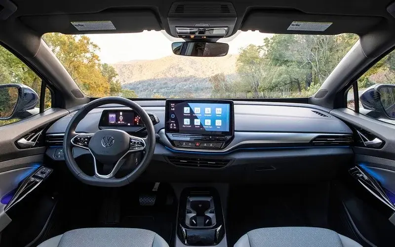 فولکس ID.4 با هدف جذب مخاطبان علاقهمند به خودروهای برقی، تلاش کرده تا نه تنها به عنوان یک وسیله نقلیه سازگار با محیط زیست، بلکه به عنوان یک خودروی نیمه لوکس و مدرن شناخته شود و به همین دلیل میتواند گامی جسورانه و پر ماجرا از سوی ماموت خودرو در بازار ایران تلقی شود. طراحی فولکسواگن ID.4 با خطوط ساده و روان، ظاهری مدرن و آیندهنگرانه دارد و در عین حال اصالت کمپانی آلمانی را حفظ کرده است. چراغهای LED باریک و طراحی آیرودینامیک بدنه، جذابیت بصری این خودرو را افزایش دادهاند. در بخش داخلی، کابین خودرو با استفاده از مواد باکیفیت و طراحی به شدت مینیمالیستی، فضایی آرام و دلنشین ارائه میدهد. نمایشگرهای دیجیتال با گرافیک زیبا و سیستم اطلاعات و سرگرمی پیشرفته تجربهای مدرن را برای سرنشینان فراهم میکنند. همچنین فضای داخلی بزرگ و ارگونومیک بودن صندلیها راحتی در سفرهای طولانی را تضمین میکند. موتور الکتریکی این خودرو، نیروی لازم را به محور عقب منتقل میکند. باتری لیتیوم یونی ID4 وارداتی بازار ایران، از نوع 55 کیلووات ساعت بوده و مجهز به سامانه خنککاری (با مایع) مستقل است. البته باید بدانید که فولکس ID4 با باتریهای 62 و حتی 82 کیلووات ساعت نیز در بازار جهانی عرضه شده. مدلهای وارداتی فولکس ID4 از کشور چین به ایران میآیند و نکته جالب اینجاست که این خودرو، هم توسط شرکت SAIC با نام اختصاصی ID4X و هم توسط شرکت FAW با نام اختصاصی ID4 CROZZ به تولید میرسد که در ظاهر، تفاوتهای مختصری با یکدیگر دارند اما در باطن، کاملا مشابه هستند. نسخههای وارداتی در ایران نیز در شرکت «فاو» تولید شدهاند. همانند اکثر خودروهای برقی، در ID4 برای شروع به رانندگی، نیازی به فشردن دکمه استارت ندارید، فقط کافی است پدال ترمز را فشار دهید، اهرم برقی تعویض دنده را روی حالت D قرار دهید و حرکتتان را شروع کنید. سقف تمام شیشهای یک تکه، کلیدهای لمسی در کابین، کلاستر چسبیده به ستون فرمان و اهرم چرخشی تعویض دنده (که در سمت راست کلاستر جاسازی شده) از جمله نکات جالب در کابین ID4 برقی هستند.
